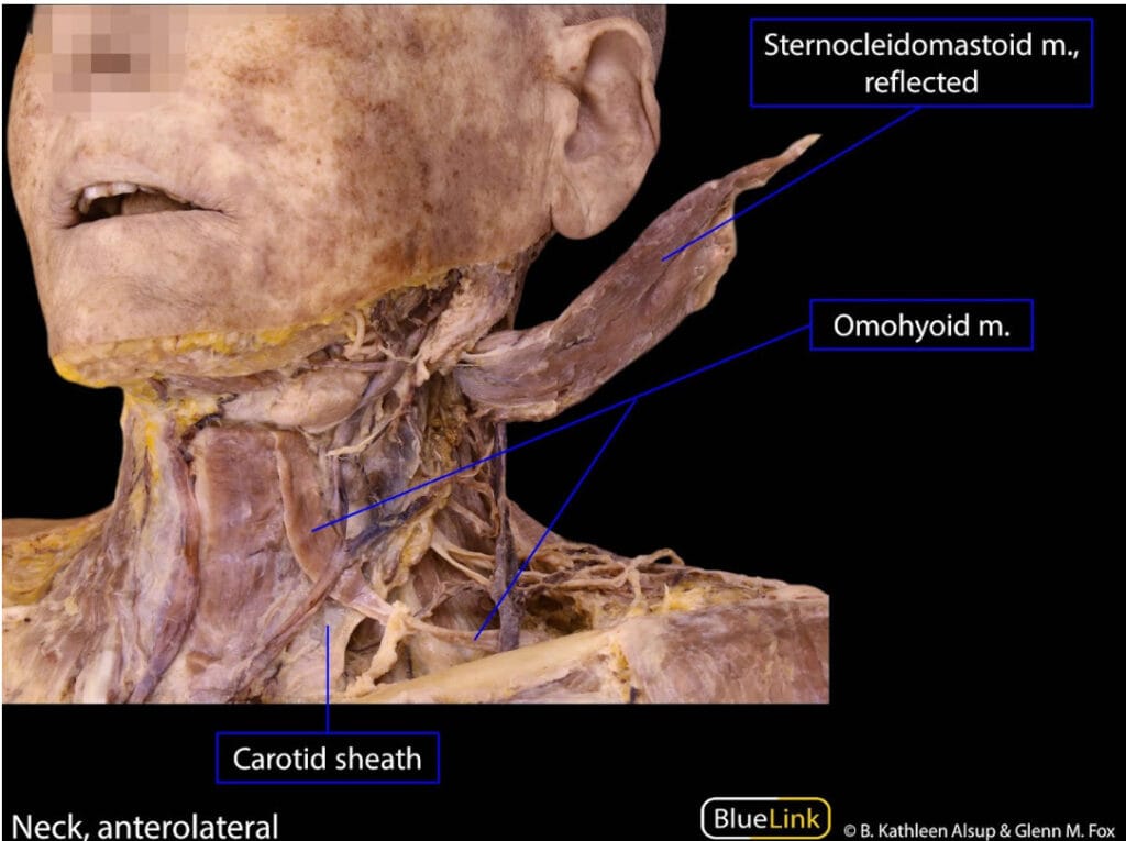 | ✅ 경동맥, 경정맥, 갑상샘, 후두 등 중요한 구조물이 밀집되어 있어, 수술 시 접근 부위로 자주 이용되며 림프절 병변의 진단에도 중요합니다. |