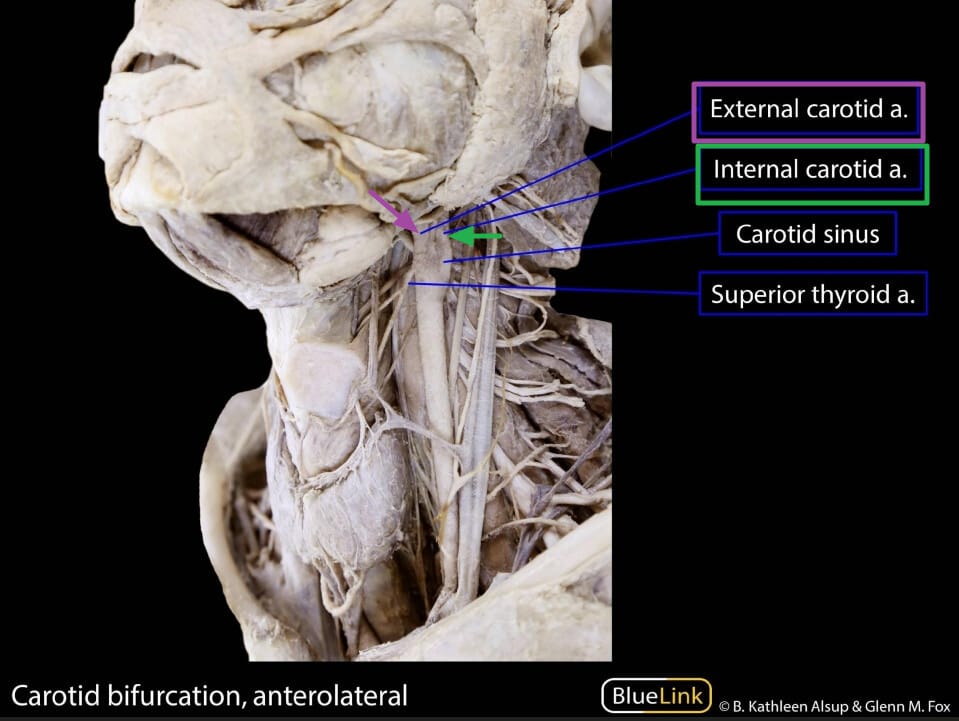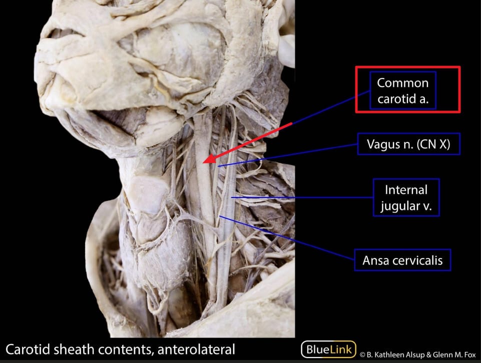 | ✅ 목을 따라 올라가 외경동맥과 내경동맥으로 분지되는 주요 동맥입니다. |