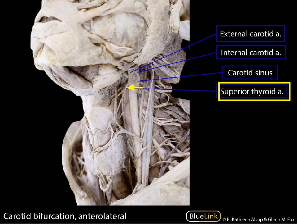 | ✅ 외경동맥의 첫 분지로, 갑상선 위쪽을 공급합니다. |