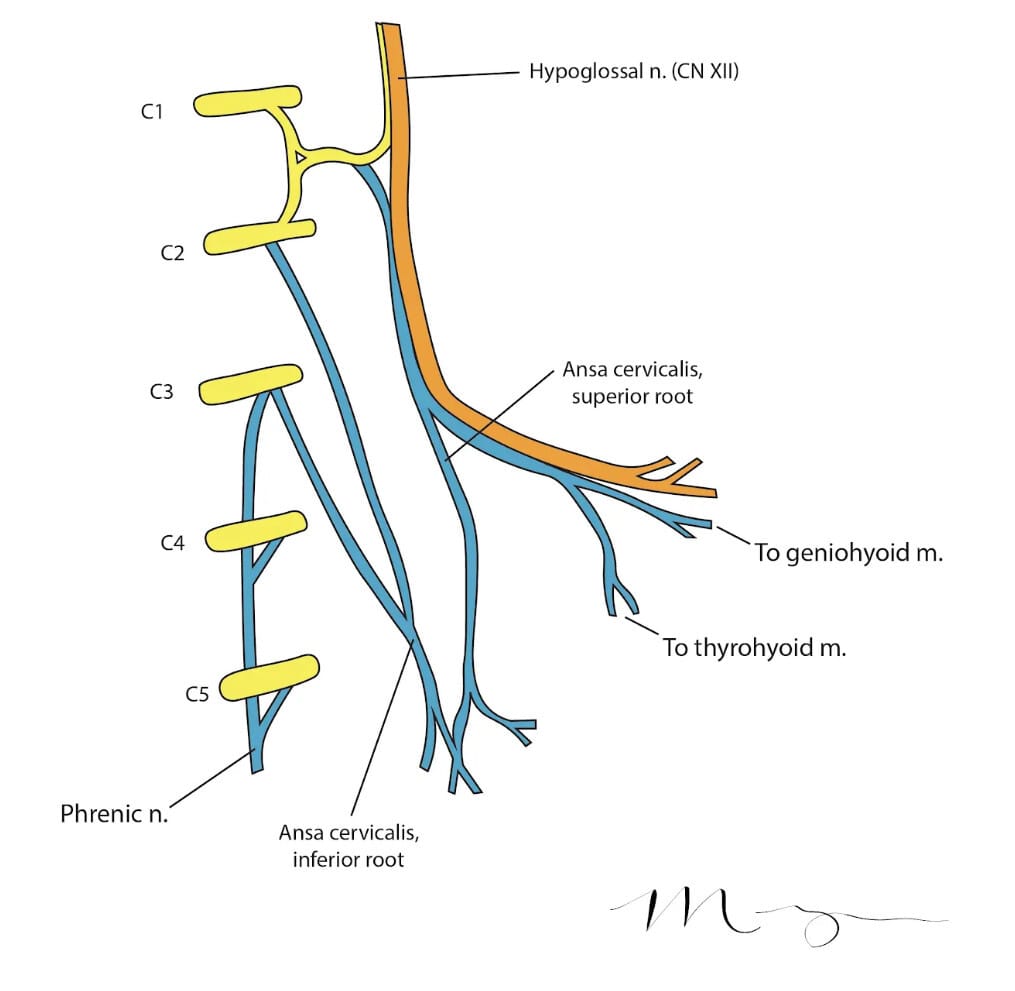 | ✅ 설하신경 일부와 경신경총이 이루는 고리 모양의 신경으로, 설하근육을 지배합니다. |