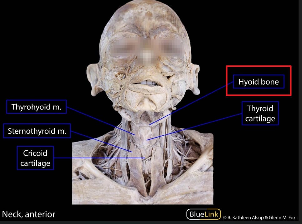 | ✅ 경부 전상부에 위치하며, 근육과 인대 부착 지점이 되는 U자형 뼈입니다. |