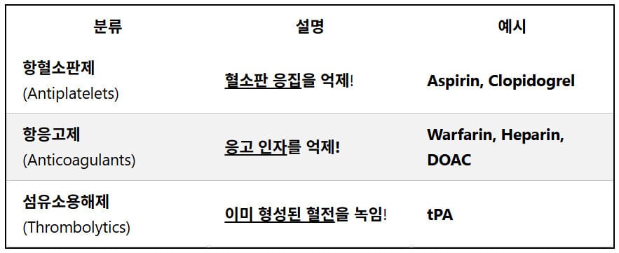 | 🟨심방세동, 인공판막 등 만성 항응고 필요 시 (특히 인공판막, Afib 이 있을땐 와파린만!) |