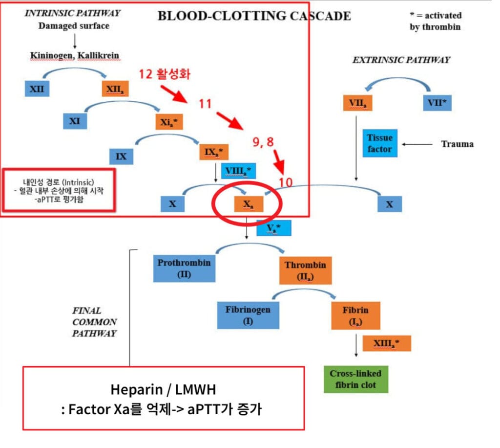 | 🟧 Antithrombin III을 활성화하여 thrombin(IIa)과 Factor Xa 억제 |