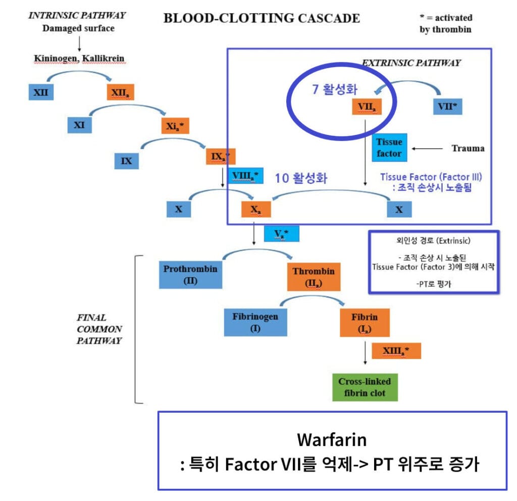 | 🟧 비타민 K 억제를 통해 II, VII, IX, X 인자 합성 억제 |
