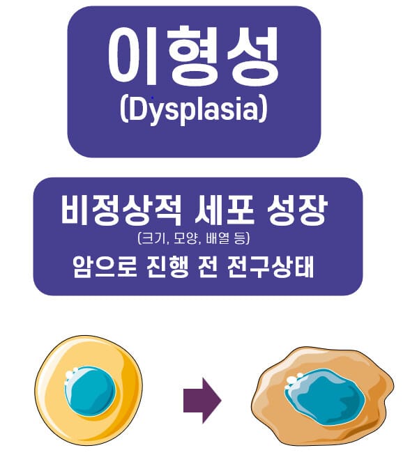- 암으로 발전할 위험성 높음 , 다른 병리적 변화로부터 초래될 수 있음