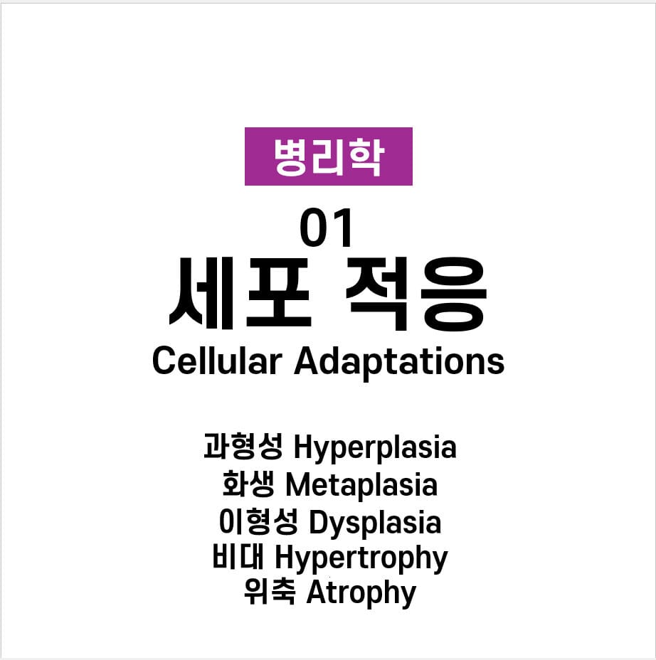 세포 적응(Cell Adaptations)은 세포가 다양한 자극과 스트레스에 적응하면서 나타나는 현상으로, 외부 환경 변화에 대응해 세포 수준에서 구조적 변화를 일으키는 과정을 의미합니다. 이번 글에서는 과형성(Hyperplasia), 화생(Metaplasia), 이형성(Dysplasia), 비대(Hypertrophy), 위축(Atrophy)라는 다섯 가지 주요 세포 적응 유형에 대해 알아보겠습니다.