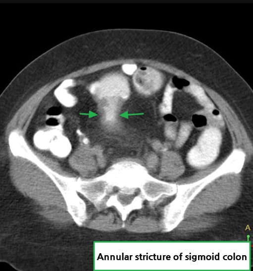 Abdrabou A, Carcinoma of sigmoid colon. Case study, Radiopaedia.org (Accessed on 15 Jul 2025) https://doi.org/10.53347/rID-23071