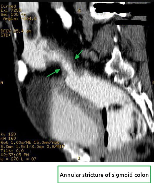 Al Salam H, Sigmoid colon adenocarcinoma. Case study, Radiopaedia.org (Accessed on 15 Jul 2025) https://doi.org/10.53347/rID-10067
