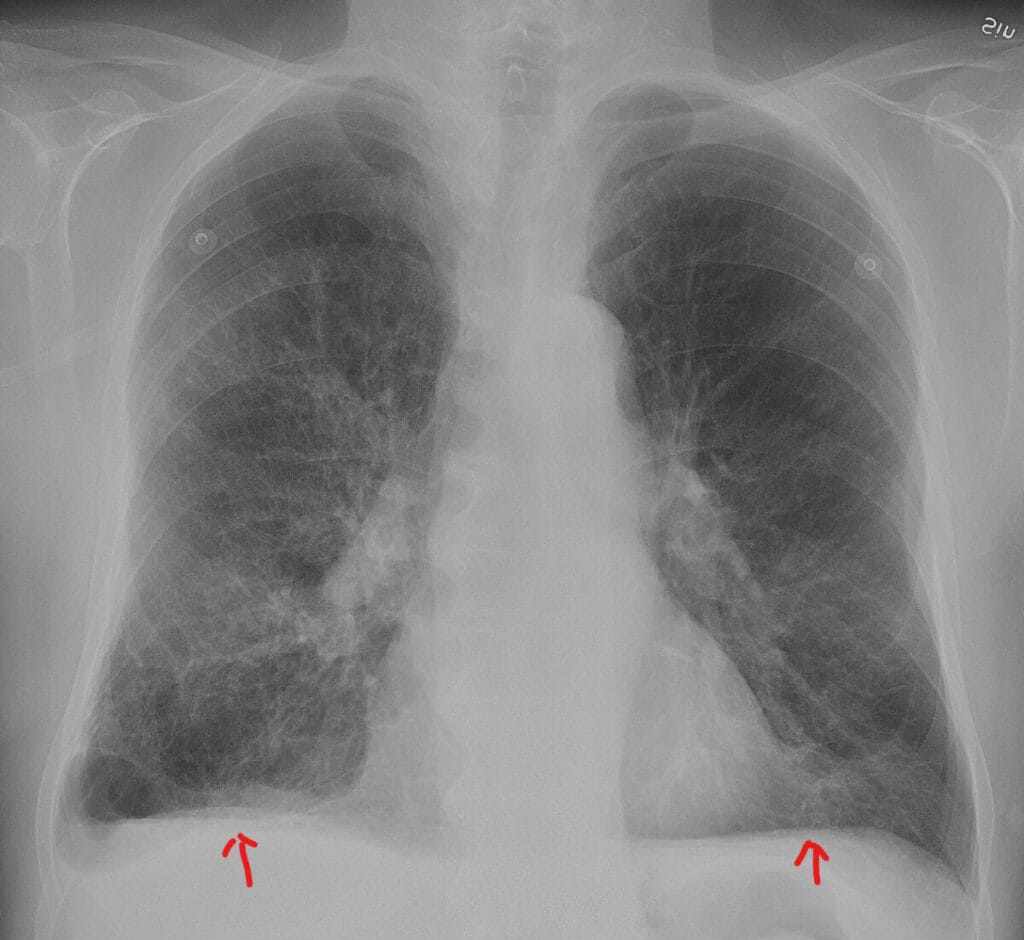 | ✅ 영상 검사(X-ray)에서는 – 폐의 과팽창(hyperinflation) – 전후직경 증가(AP diameter 증가) – 횡격막의 평탄화(flattened diaphragm)가 관찰됩니다 |
