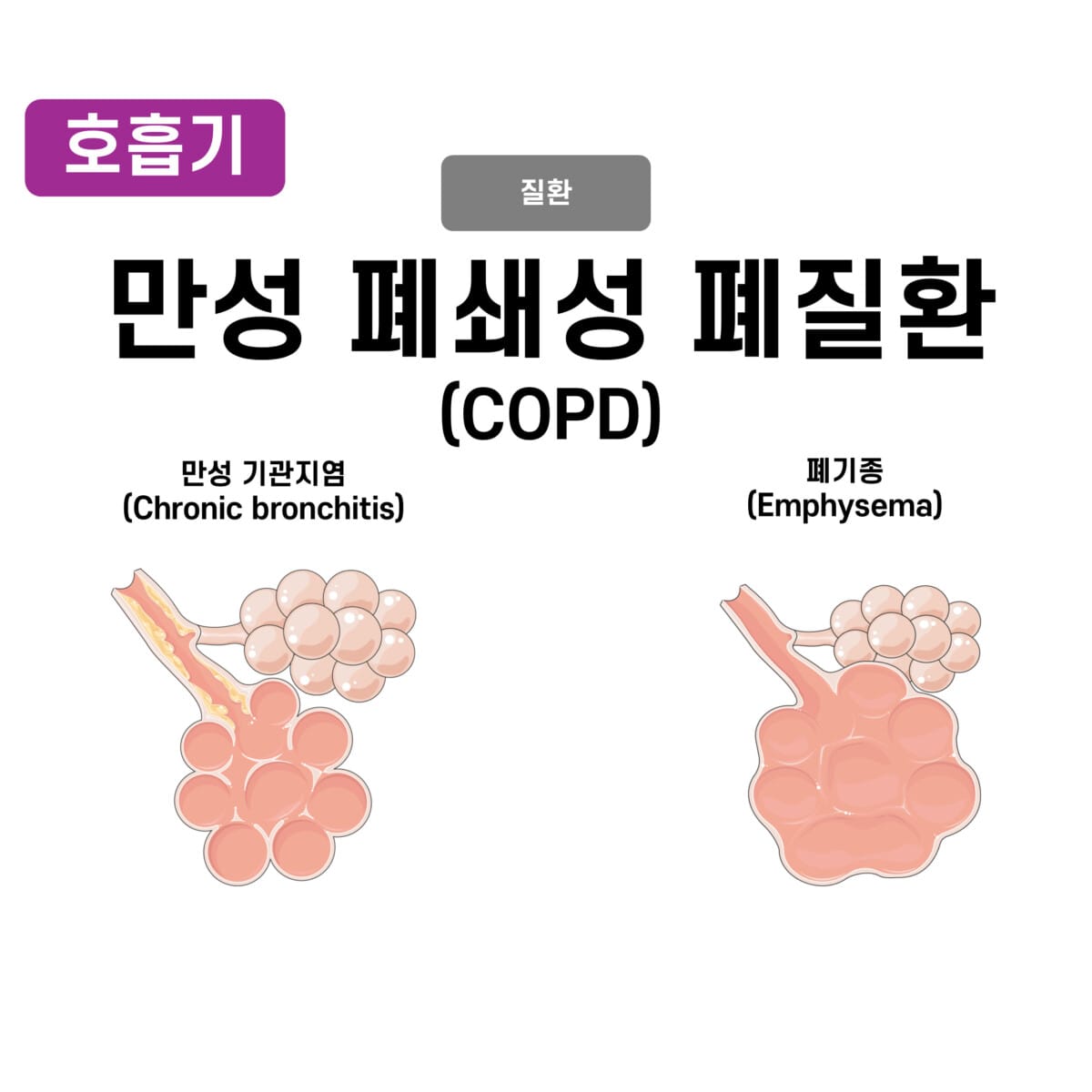 | ✅ 폐로의 공기 흐름이 지속적으로 제한되어 호흡 곤란을 유발하는 만성 염증성 폐질환 |