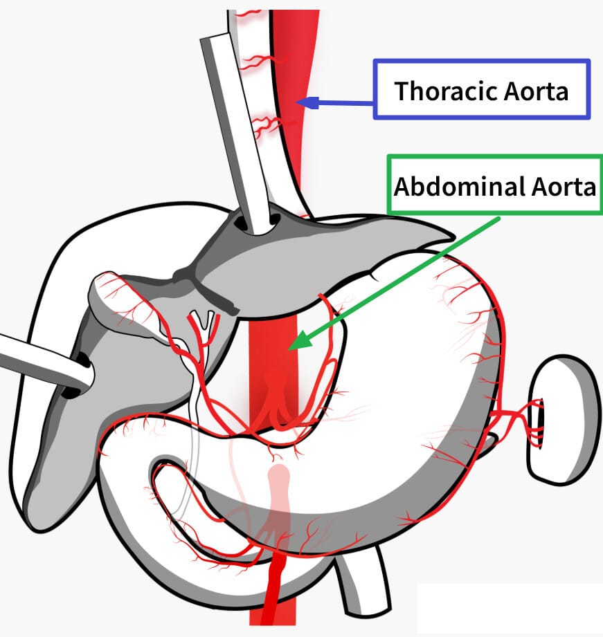🔴 대망과 위의 대만곡 혈류에 관여하여 위 수술 시 고려됩니다.