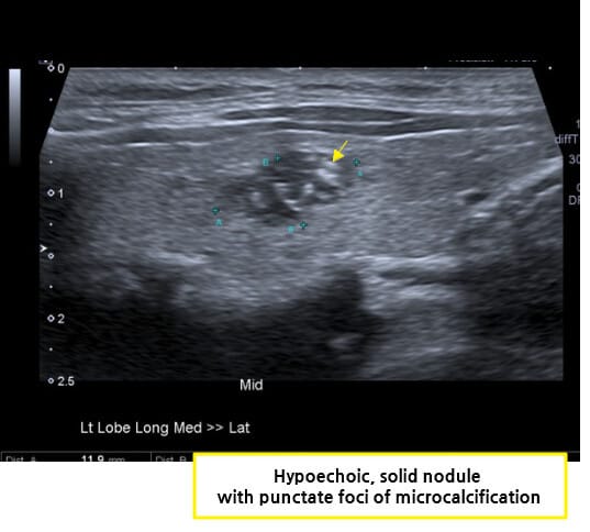 | 혈중 칼시토닌(calcitonin)과 CEA(carcinoembryonic antigen) 수치 상승을 보입니다. |