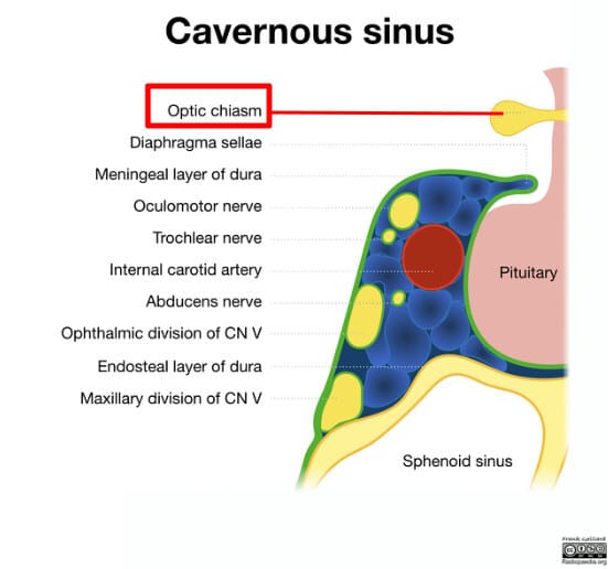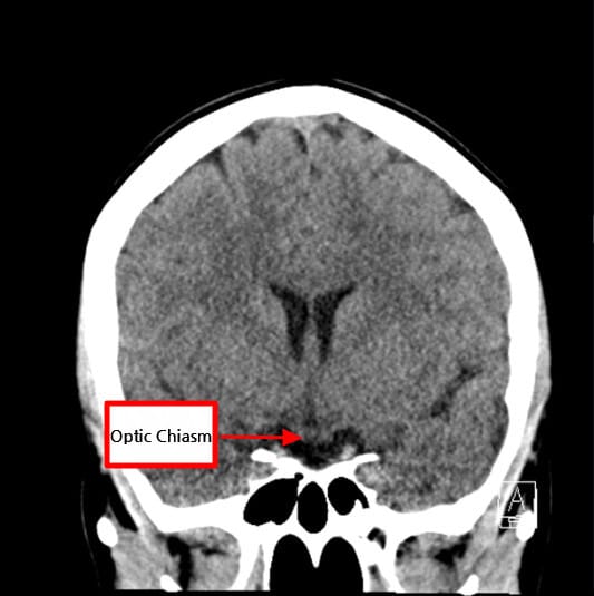 | 시신경 교차부(Optic Chaism)를 압박하여 외측 시야가 손상됩니다. |