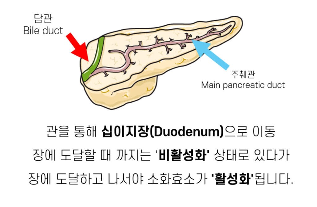 – 췌장을 보호하기 위해 비활성 상태로 분비됩니다.