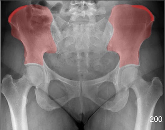 | ✅ 골반의 가장 상부 경계로, AP pelvis 영상에서 양측 상단에 대칭적으로 보입니다. |