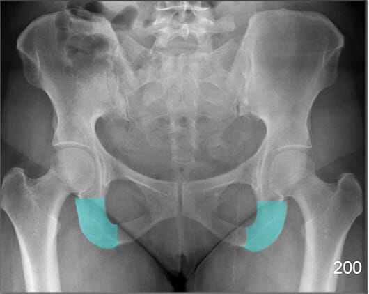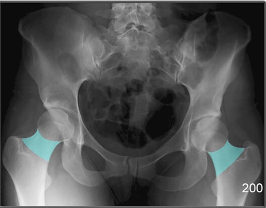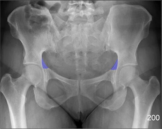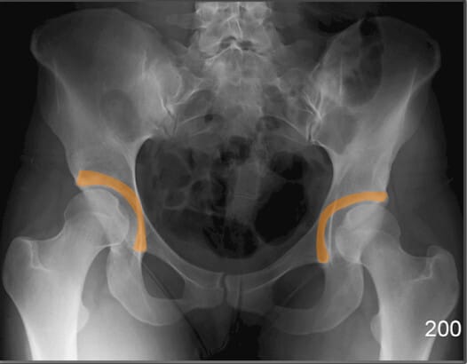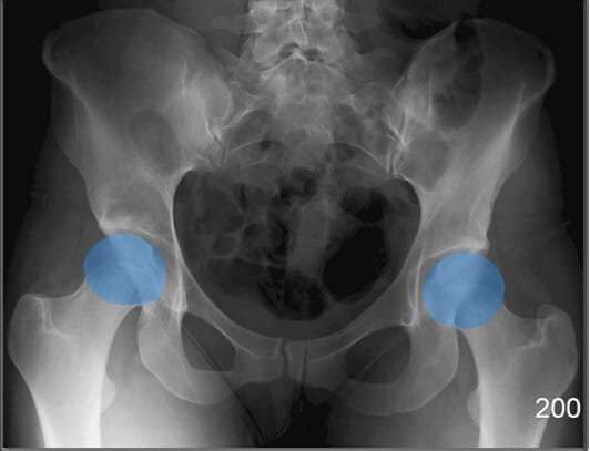 | 🔴 대퇴골두의 위치와 관절 간격을 통해 탈구, 골괴사 등을 평가할 수 있습니다. |