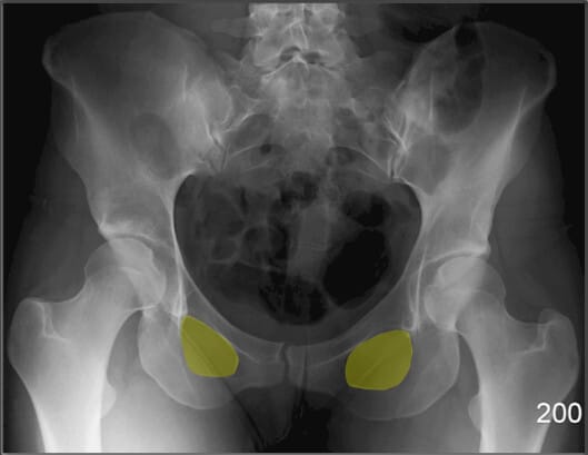 | ✅ 대퇴골두(femoral head)가 삽입되는 골반 측면의 오목한 부분으로, AP view에서 둥근 원형 구조로 나타납니다. |