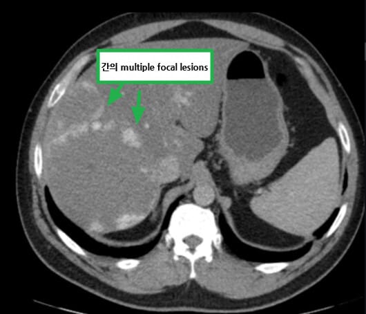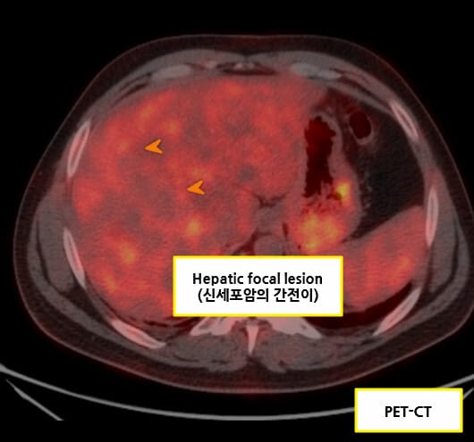 | 폐 전이가 흔하므로 병기 평가를 위해 흉부 CT를 함께 시행합니다. |