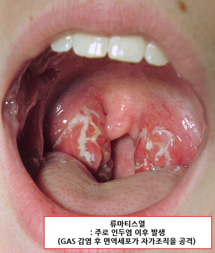 편도염 또는 인두염이 제대로 치료되지 않으면, 세균 항원에 대한 교차반응으로 심장, 관절, 뇌 등에 염증이 생깁니다.