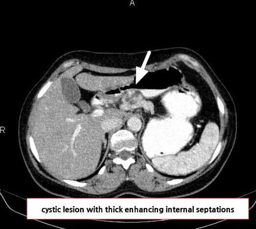| 진단이 불확실한 경우 낭종액 내 CEA, Amylase를 확인하여 감별합니다. |