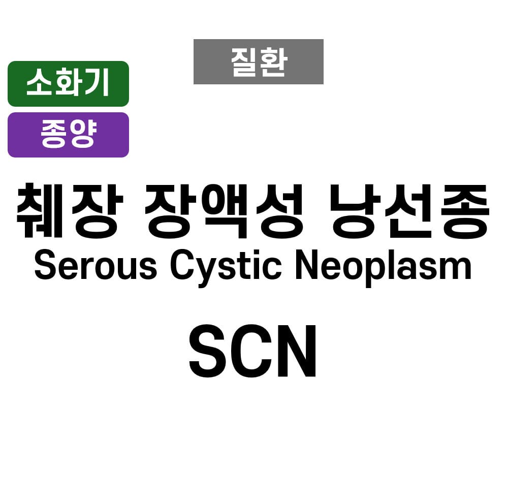 췌장 장액성 낭선종(Serous Cystic Neoplasm, SCN)은 맑은 장액을 분비하는 상피세포로 이루어진 양성 낭성 종양으로, 악성화 가능성이 매우 낮습니다.