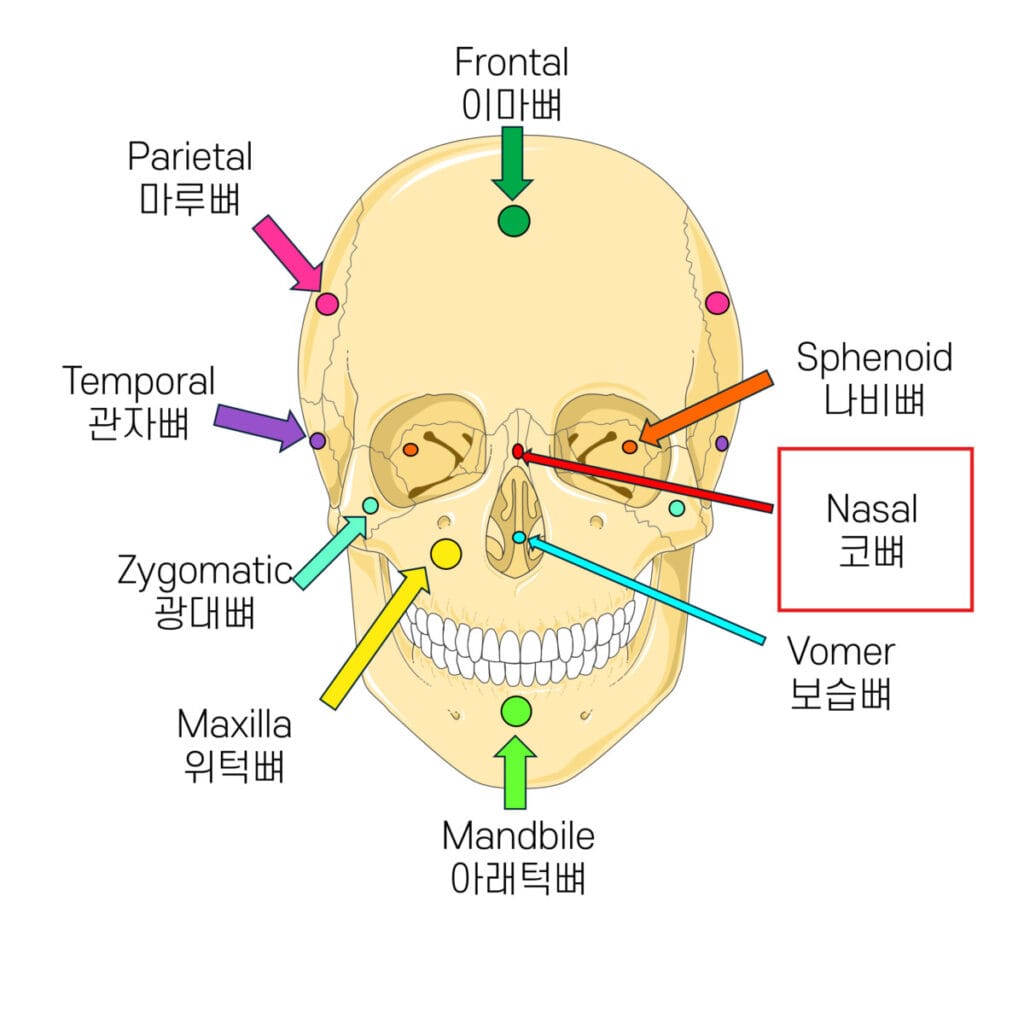 | ✅ 코의 상부 골격을 이루는 작고 쌍을 이루는 뼈입니다. |