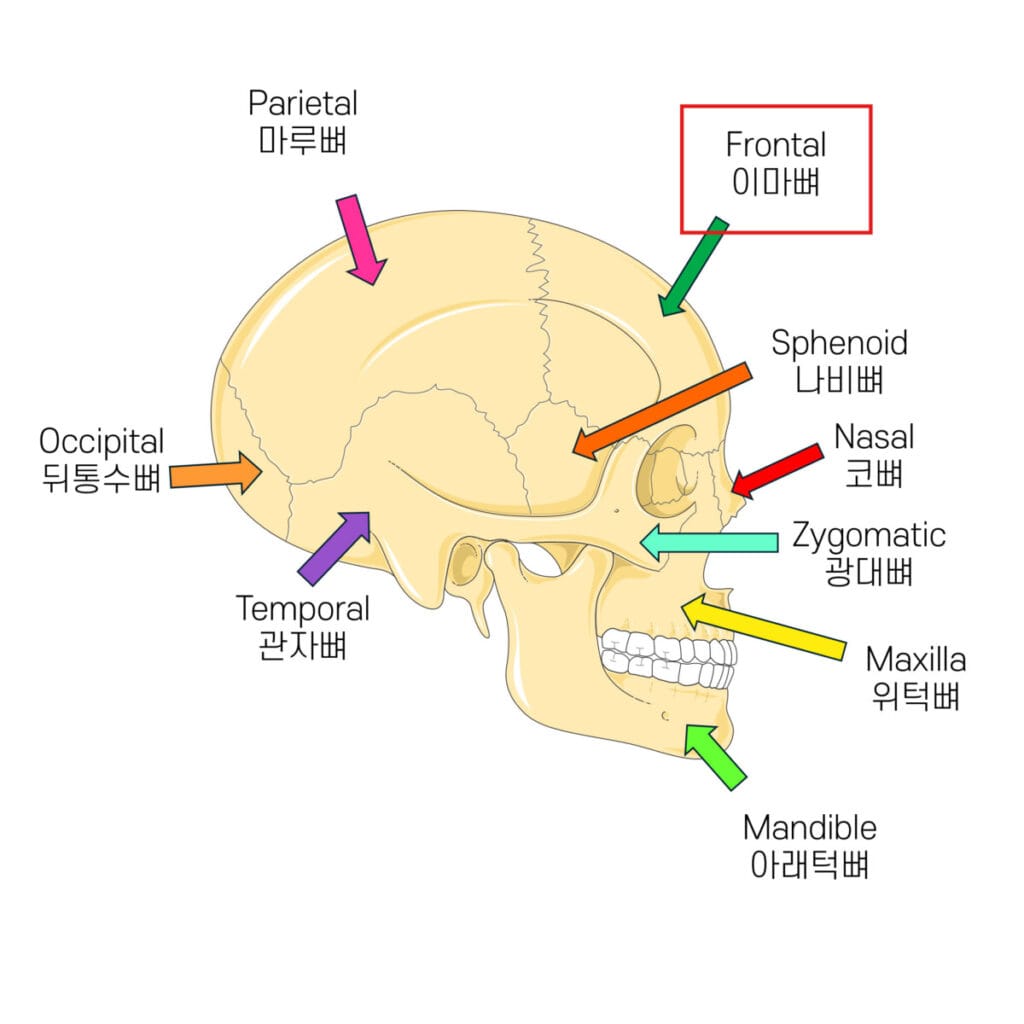 | ✅ 두개골의 전두부를 이루는 뼈로, 이마와 눈확의 위쪽 경계를 형성합니다. |
