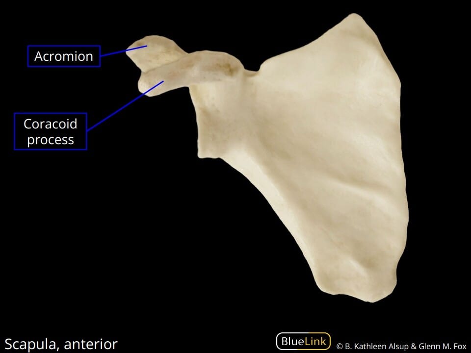 | ✅ 견갑골에서 앞으로 돌출된 돌기로, 여러 근육과 인대가 부착됩니다. |