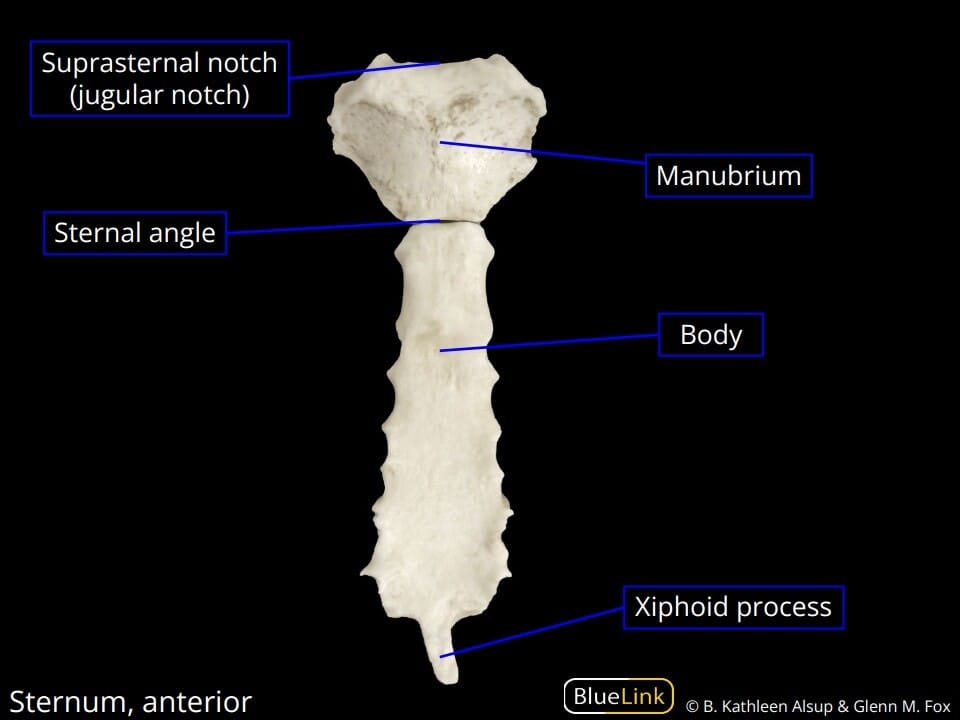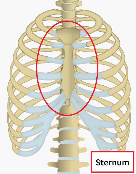 | ✅ 가슴 앞쪽 중앙에 위치한 평편한 뼈로, 갈비뼈와 연결됩니다. |