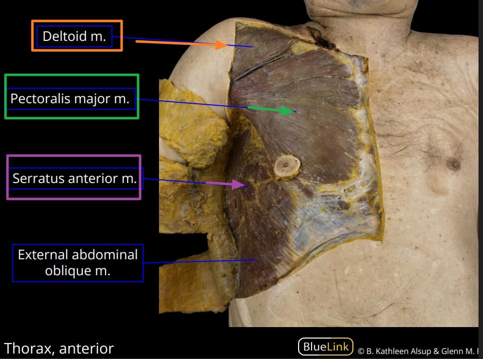 | ✅ 흉골과 쇄골에서 시작해 상완골에 부착하는 가슴 앞쪽 큰 근육입니다. |