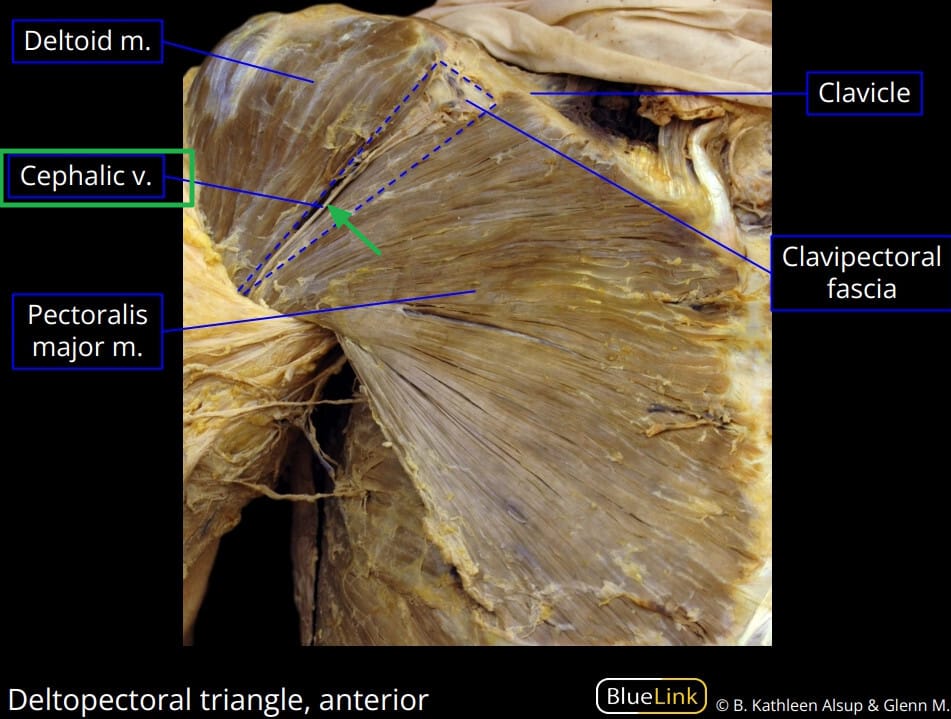 | ✅ 상지 바깥쪽에서 시작해 쇄골 부근으로 이어지는 표재성 정맥입니다. |