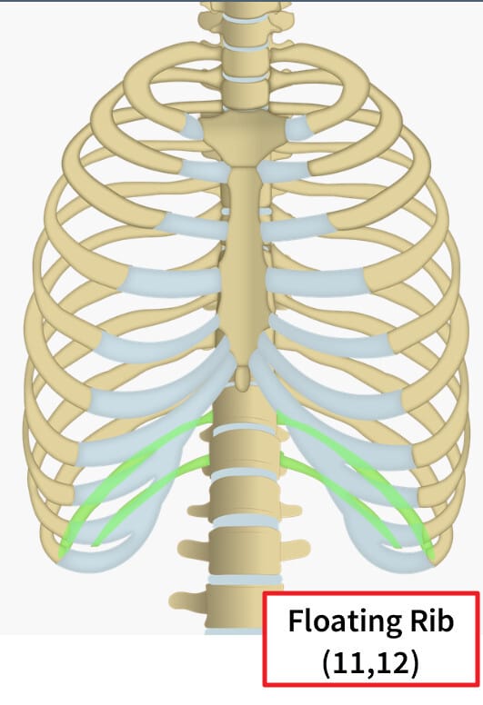 | ✅ 11번과 12번 갈비뼈로, 흉골과 연결되지 않고 자유롭게 끝나는 늑골입니다. |